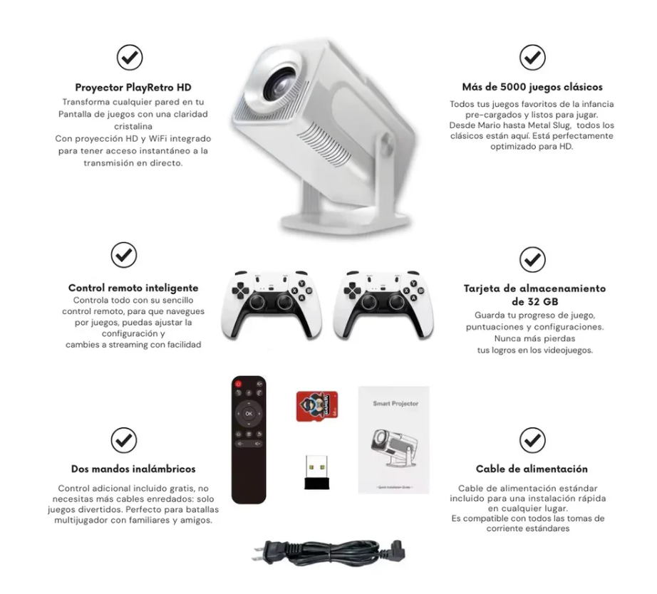 Découvrez le PlayRetro™ Projecteur Gamer, conçu pour ceux qui exigent une expérience de divertissement supérieure, combinant console rétro et cinéma à la maison dans un seul appareil.